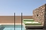 is approx. 35 m2 and it consists of a double bed, a sleeping area & a living room area. Ideal for 2 persons. This room type also provides a private pool (heated up to 26 °C during low season) & balcony or terrace with sunbeds